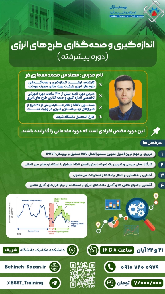 برگزاری دوره پیشرفته “اندازه‌گیری و صحه‌گذاری طرح‌های انرژی (M&V)”